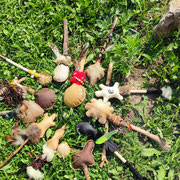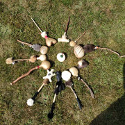 Für deine Rassel stehen viele unterschiedliche Tierhäute zur Verfügung, die du vor Ort auswählst. Auf den Bildern siehst du einige Rasseln nach dem Rasselbau. Auch die Rassel wird in einer