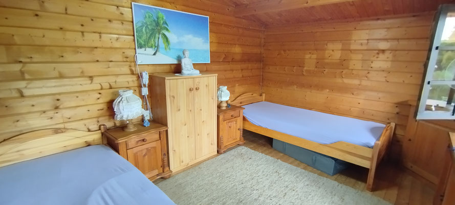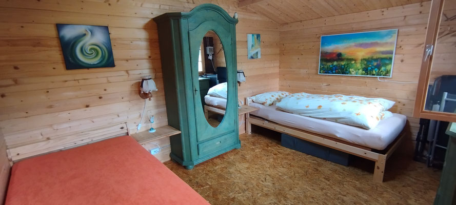 Es besteht die Möglichkeit im eigenem Zelt, Auto oder Wohnmobil kostenfrei zu übernachten. Möchtest du jedoch lieber in einem Bett schlafen, kannst du in einer unserer Holzhütten direkt am See (20 Euro pro Person / Nacht) übernachten. Es stehen 2 kleine Holzhütten à 2 Betten am Rande des Naturbadesee zur Verfügung. Wenn es dir lieber ist, dir außerhalb ein Zimmer oder Ferienwohnung zu mieten, ist dir das natürlich auch freigestellt.