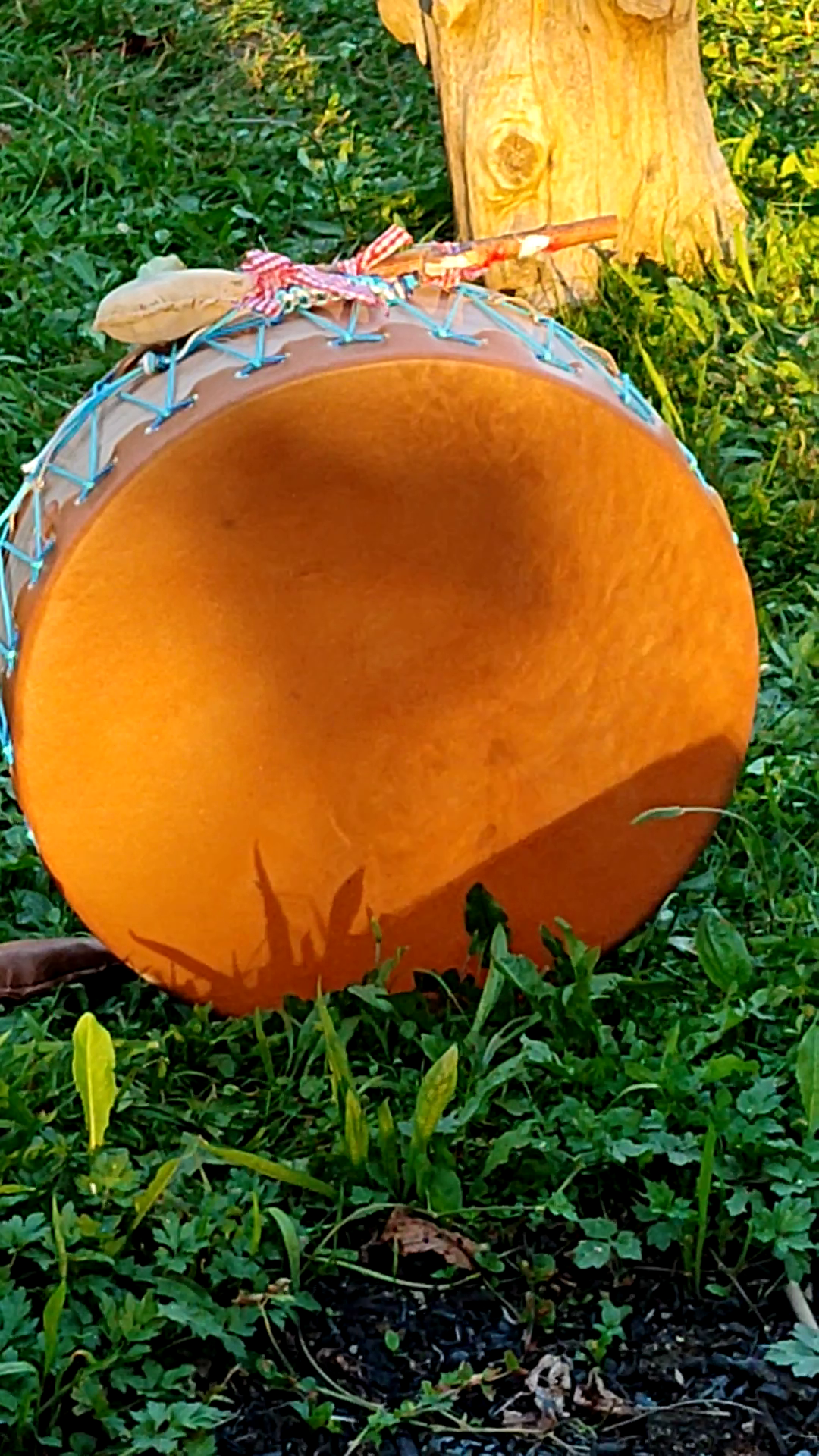 Die Trommel symbolisiert den Herzschlag von Mutter Erde – kraftvoll, tragend, verbindend. Die Rassel steht für die feinstoffliche Schwingung des Himmels – leicht, klar und durchlässig. Beide Werkzeuge verbinden Himmel und Erde und entstehen aus deiner Seele, begleitet von Ritualen,